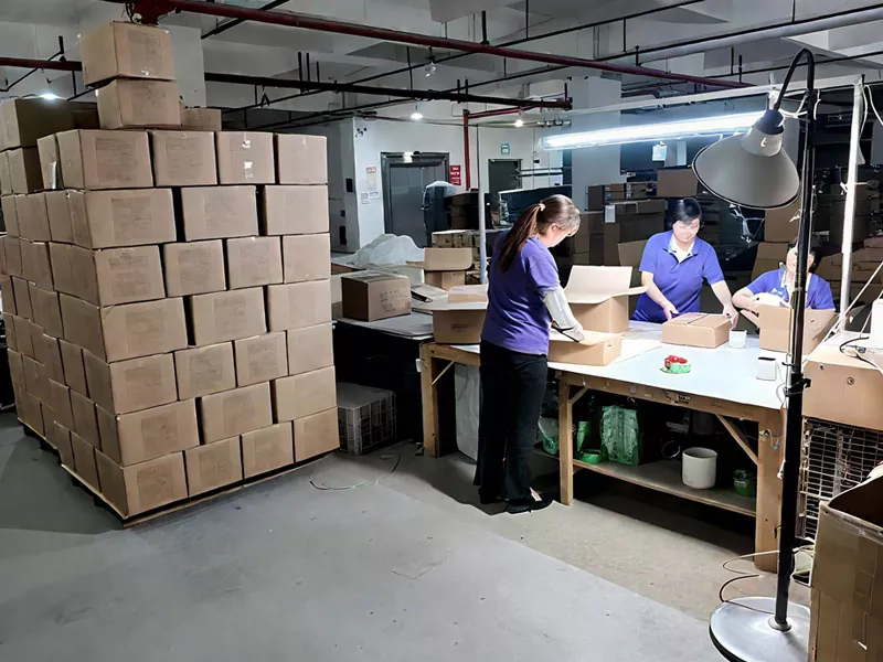 Qablaşdırma və göndərmə qabiliyyətini asanlaşdırmaq üçün, Dongguandakı qərargahımızın yaxınlığında öz qablaşdırma mərkəzimizi qurduq. Bu mərkəz şüşə şamdan və diffuzorlar kimi kövrək əşyalar üçün qablaşdırma həlləri üzrə ixtisaslaşmışdır. Xüsusi qutular və astarlar yarada bilərik və nəqliyyat zamanı təhlükəsizliyini təmin edən şüşə diffuzorlar və dekorativ keramika kimi əşyaları qorumaq üçün ekoloji cəhətdən təmiz materiallardan istifadə edirik.