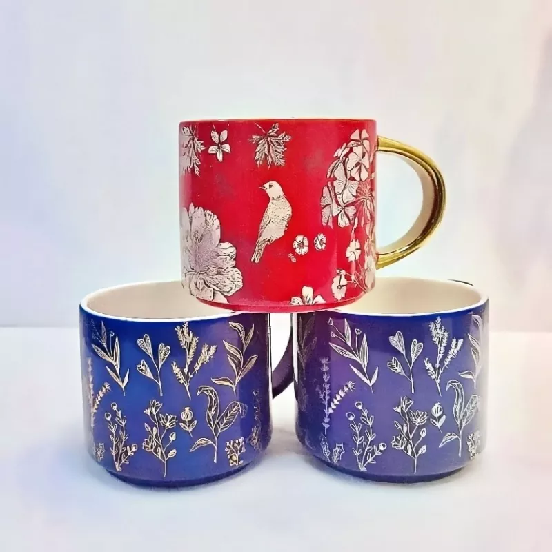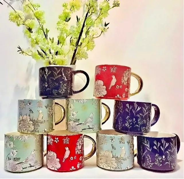 Bu keramika mug elektroklatmış qızıl sapı olan, dəqiqliklə dekols ilə hazırlanmış, təbiətdən ilhamlanan bənzərsiz bir cazibədarlığı təcəssüm etdirir. Çiçəklənmənin zərif toxumaları, istərsə də təbii rəngli quşların canlı formaları, ya da təbii rəng bloklarının cazibədar formaları, mug, flora, fauna və canlı rənglərin hədiyyələrini ələ keçirir. Hər üsluba uyğun olmaq üçün, Mugun sapı özelleştirilebilir. Qızıl örtüklü versiya, 18k qızıldan bənzəyən zəngin, qızıl bir hue ilə parlayır, incəlik toxunuşu əlavə edir. Sevdiyiniz rəngə də uyğunlaşdırıla bilər.