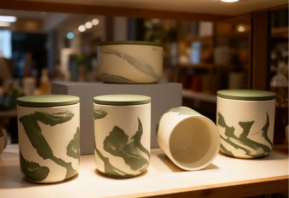 Qaynar Teqlər: Təbii yaşıl mərmər keramik şam qabı