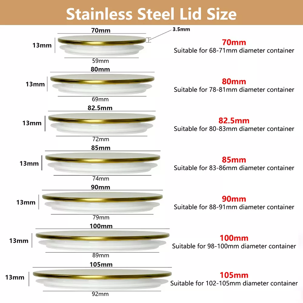Bu paslanmayan polad şam jar qapaqları ən çox yayılmış şam jar açılışlarına uyğunlaşmaq üçün hazırlanmışdır. Onlar yalnız qabı təsirli şəkildə möhürləyir və ətirdə kilidlənir, həm də ümumi qablaşdırmanın şık və fərdi hissini də artırır. Bir ev qəbulu (qonaq otağını bəzəmək və sevdiyiniz qoxu yaymaq kimi) və ya gözəl bir markalı hədiyyə dəstinə daxil olmaq kimi istifadə olunub, nüvəli praktikliyi, müsbət davamlılığı və gənc dostluq, şəxsi ifadəni uğurla birləşdirir.